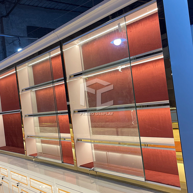 Kaca tempered berkualitas tinggi, kunci keamanan tinggi, dengan dasar putih. Jadikan tampilan lebih indah.Tampilan furnitur merupakan elemen gaya yang penting. Ciptakan suasana yang nyaman dan mewah, sehingga pelanggan dapat betah saat membeli perhiasan.